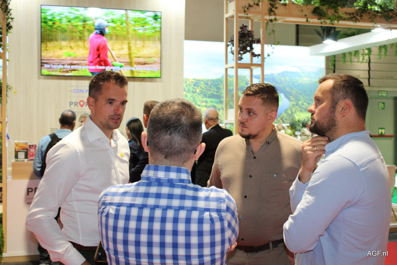 René Vanwersch, Tim van Haandel en op de achtergrond in gesprek Jordi Calatayud y Monge van Mulder Onions.
